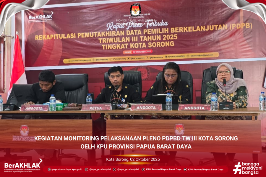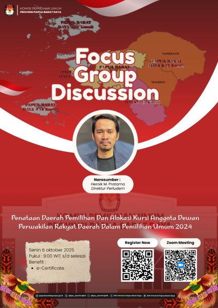KPU Provinsi Papua Barat Daya menggelar kegiatan Focus Group Discussion (FGD) dengan tema “Penataan Daerah Pemilihan dan Alokasi Kursi Anggota DPRD dalam Pemilu 2024”. Kegiatan ini dilaksanakan oleh sub bagian Teknis Penyelenggaraan Pemilu secara hybrid (06/10/2025). Ketua KPU Provinsi Papua Barat Daya dalam sambutannya menyampaikan bahwa FGD ini merupakan forum strategis untuk menghimpun masukan dari berbagai elemen masyarakat sebagai dasar dalam menyusun rancangan dapil dan alokasi kursi yang sesuai dengan dinamika kependudukan dan kebutuhan representasi di Papua Barat Daya. FGD ini menghadirkan narasumber utama Heroik M. Pratama, Direktur Eksekutif Perludem (Perkumpulan untuk Pemilu dan Demokrasi) secara daring. Dalam paparannya, Heroik menekankan pentingnya penataan dapil yang adil, proporsional, dan mencerminkan prinsip keterwakilan yang setara. FGD ini juga menjadi sarana edukasi publik mengenai mekanisme penataan dapil, serta memastikan proses ini berjalan secara transparan dan akuntabel menjelang Pemilu kedepannya. Kegiatan ini diikuti oleh berbagai pihak, antara lain penyelenggara Pemilu KPU dari tingkat Provinsi dan Kabupaten/kota, Bawaslu Provinsi Papua Barat Daya, pegiat pemilu, peserta pemilu partai politik dan stakeholder terkait lainnya.