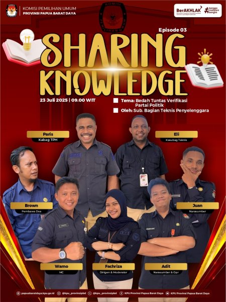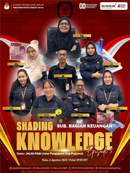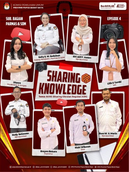 Kegiatan Sharing Knowledge merupakan program internal KPU Provinsi Papua Barat Daya yang bertujuan meningkatkan kapasitas dan profesionalitas penyelenggara pemilu di seluruh tingkatan.